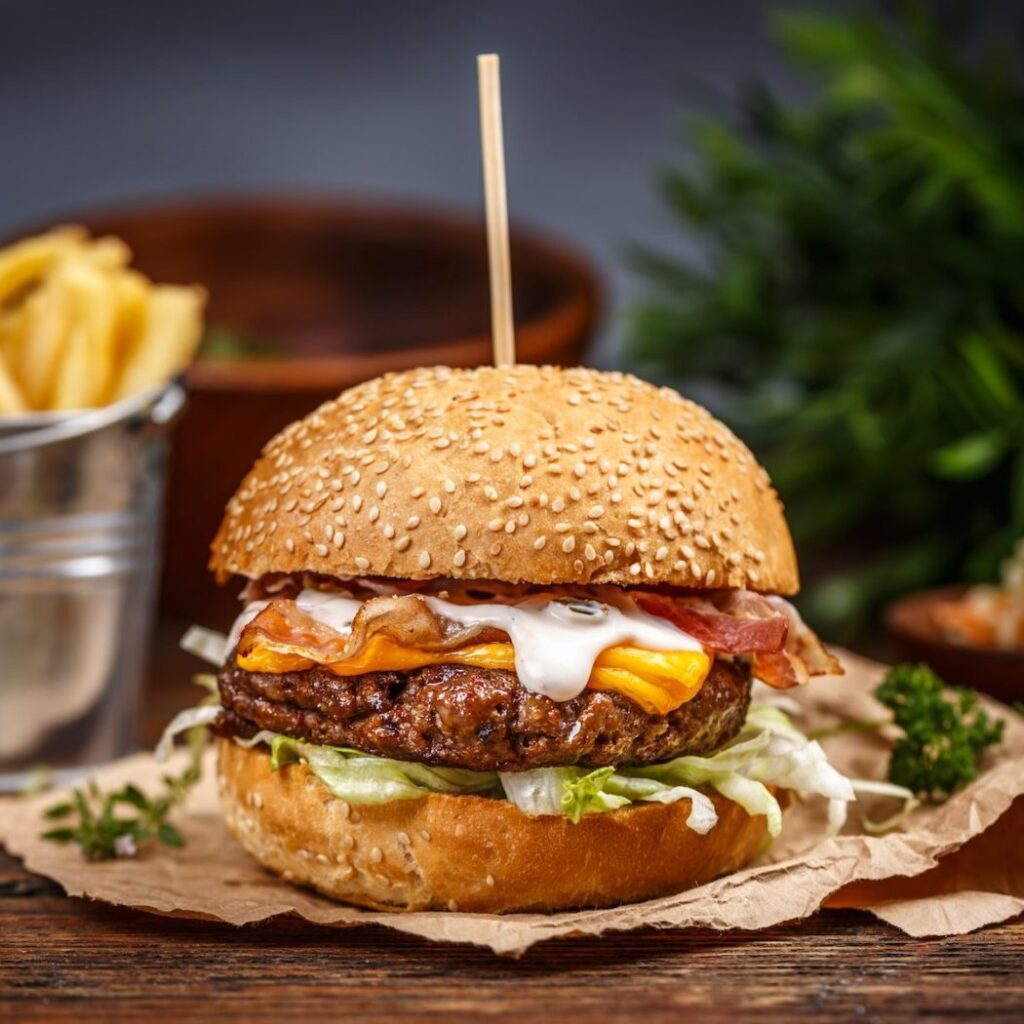 Experience the classic cheeseburger made with fresh ingredients, juicy beef, and melted cheese – a timeless favorite for any occasion.