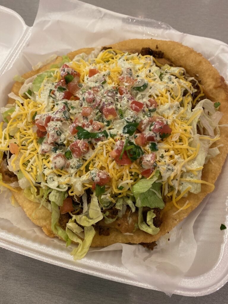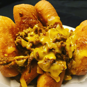 Delicious fry bread bites topped with traditional taco toppings and your choice of ground beef or shredded chicken. Fry Bread Bites with Honey and Powdered Sugar: A sweet twist on a classic, our fry bread bites are drizzled with honey and sprinkled with powdered sugar for a tasty treat.